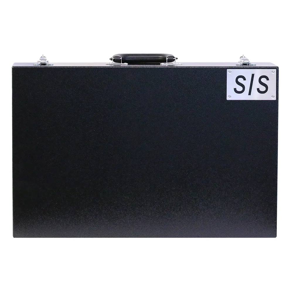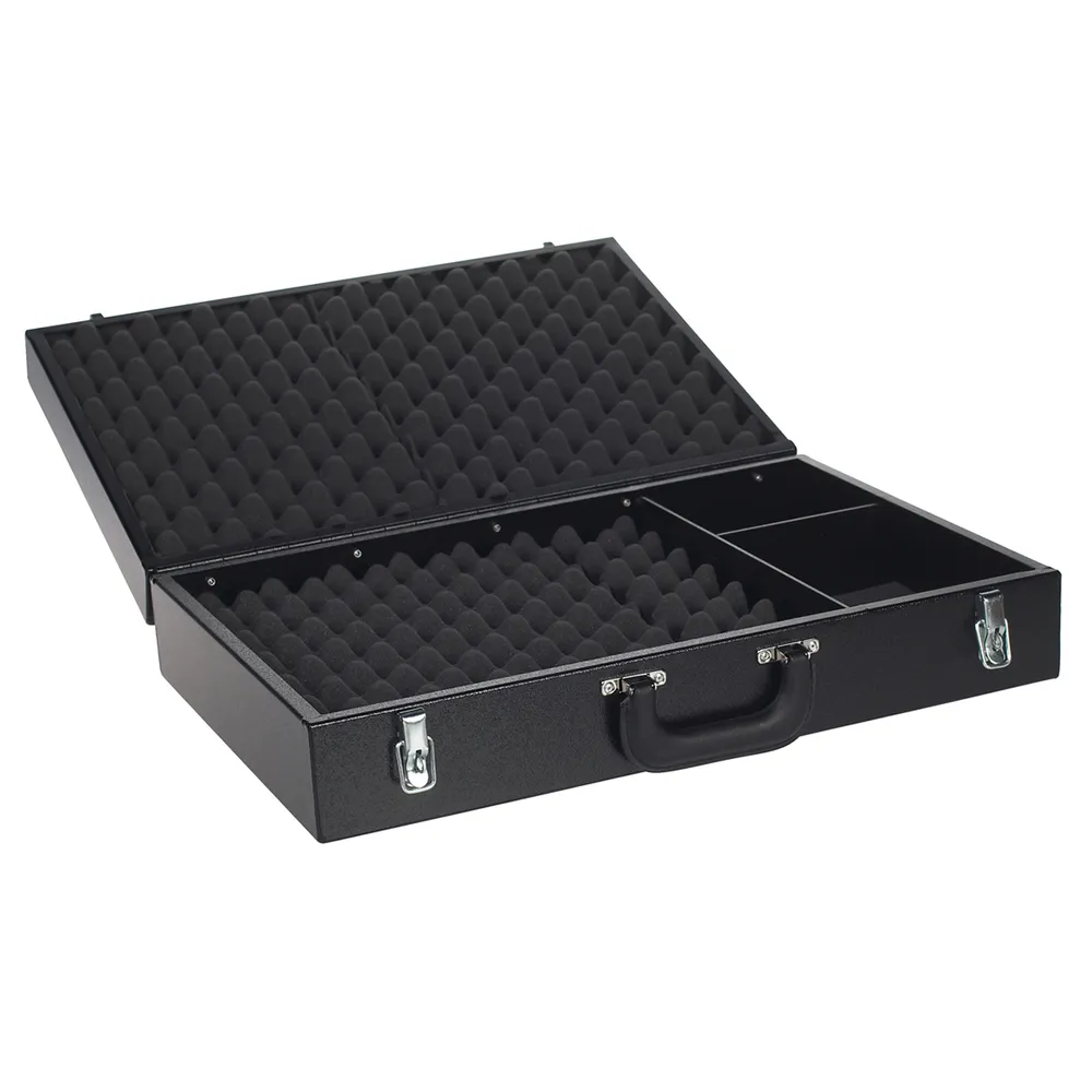 Tough, durable aluminum box includes padded divided section for blades and other utensils. Scratch-resistant black hammer tone powder coat for a luxurious look.