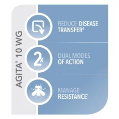 Also for control of litter beetles. Combination of a neonicotinoid insecticide, with both contact and stomach modes of action, with a house fly attractant provides an effective fly bait formula that encourages both male and female house flies to remain in treated areas and consume a contact lethal dose. Results in a quick kill and long-lasting residual for a minimum of 6 weeks.