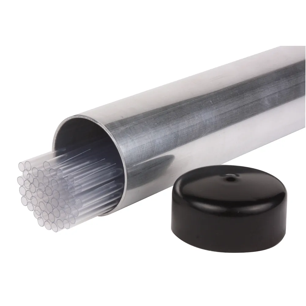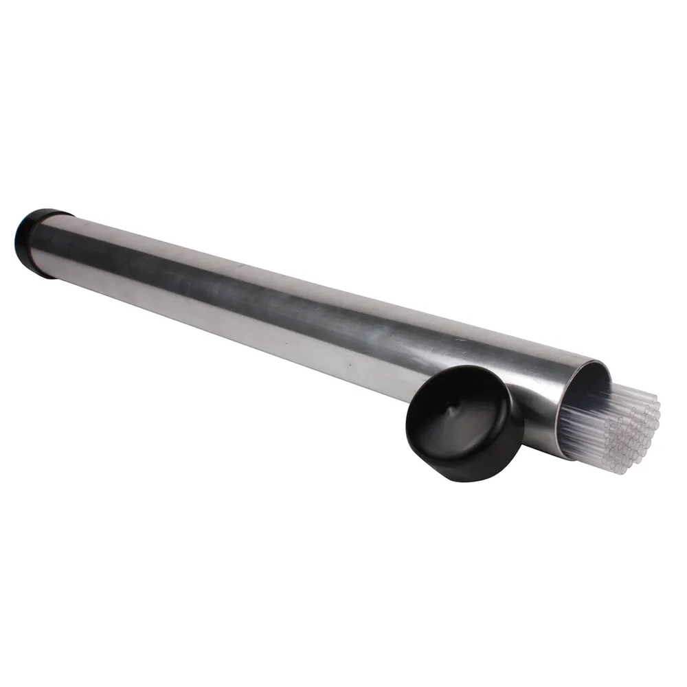 Lightweight aluminum carrier designed to store open packages of breeding sheaths and tubes. Features removable, tightly sealed plastic slipover caps to prevent contamination.Â
