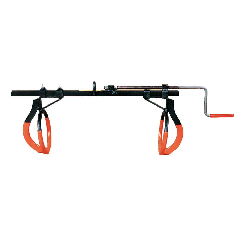 Can be used with block and tackle or front end loader. Cushion grip rings fit around the pelvic bones. 1,000 lb load limit.