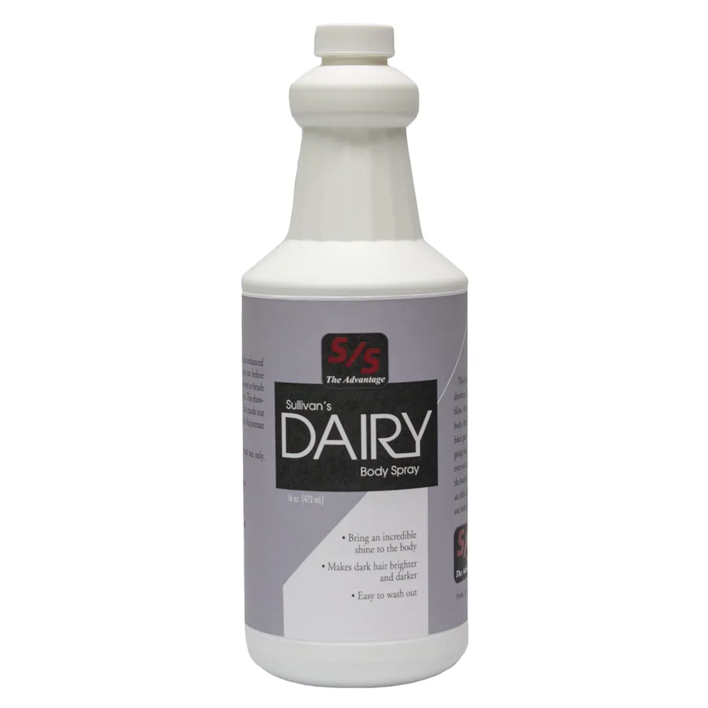 Directions: Remove any debris on cow’s body. Spray evenly on necessary areas prior to going into ring. Rub in with towel or brush. Easy to wash out.