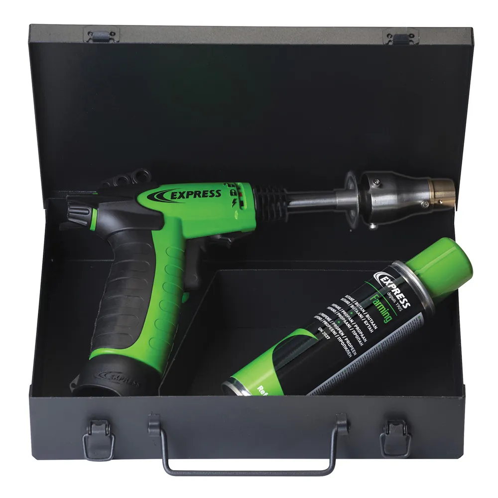 Portable, gas-powered dehorner features a butane/propane/propene fuel cartridge which snaps into the handle, eliminating any need of cords and bulky tanks. Ignites quickly even in cold weather. Reaches working temperature in under 3 minutes and can operate for 2 hours at up to 1200°F. Lightweight – weighs only 1.3 lbs including cartridge.