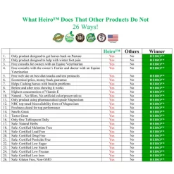 Horse have chronic foot pain? Can’t be on pasture? Help your horse with HEIRO – a proprietary blend of 8 tasty herbs, vitamin E and magnesium to safely and naturally combat elevated insulin. If your horse is suffering from signs of insulin resistance (laminitis, cresty neck, on Cushing meds but still sore, easy keeper–staying large on little food, fat pockets, founder history, senior horse health issues) try HEIRO for 30days – your satisfaction is 100% guaranteed or your money back!