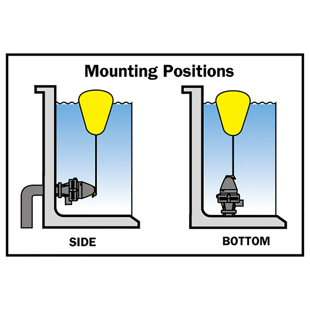 Set up underwater from the side or bottom of tank. Float is connected to valve with 14″ nylon cord which operates the pivot valve. When water level drops, pivot valve opens and activates diaphragm valve.