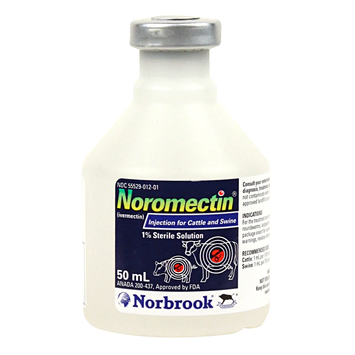 Injectable parasiticide for the treatment and control of gastrointestinal roundworms, lungworms, sucking lice and mites in cattle and swine. Noromectin also provides protection against cattle grubs.