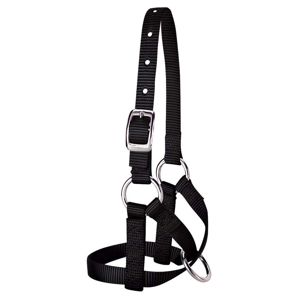 5/8″ nylon crisscross alpaca halter provides extra nose pressure when animal pulls against halter. Nickle plated hardware.