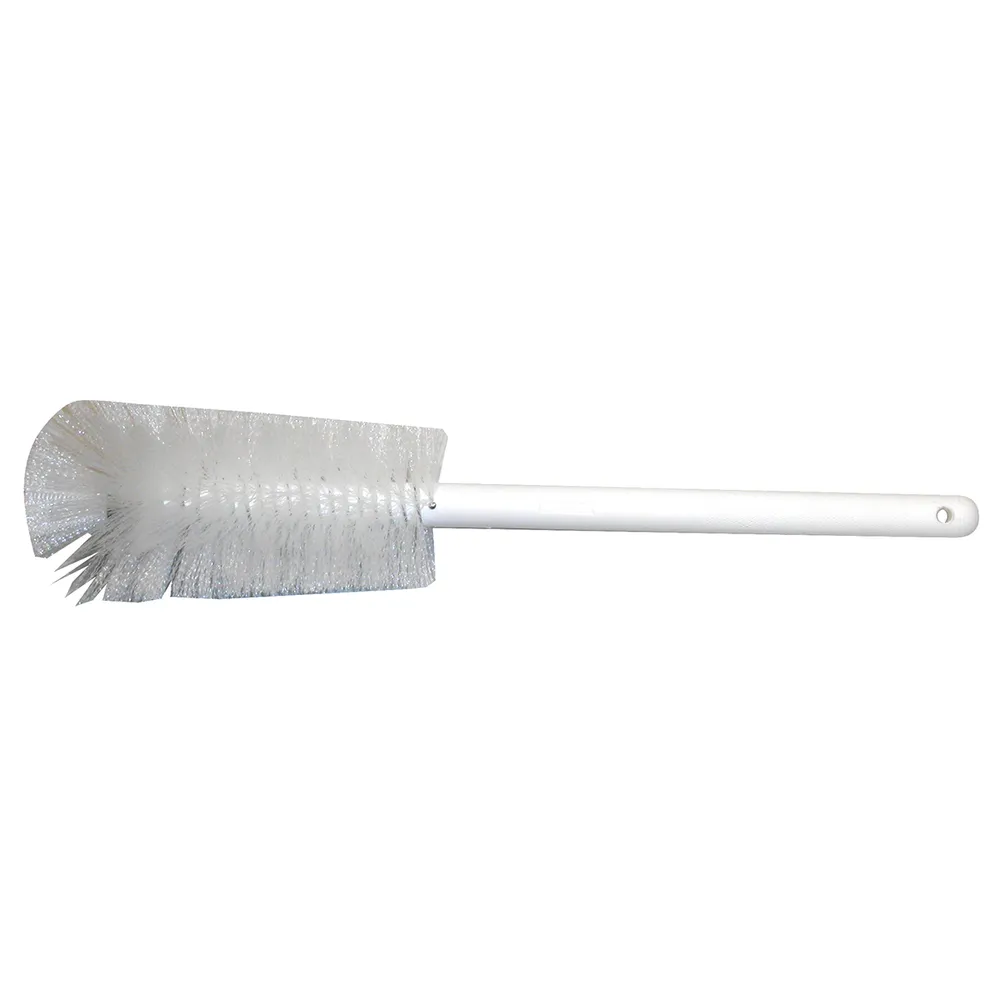 Features soft, polyester bristles for delicate cleaning of jars, calf bottles and glasses with smaller openings. Overall length 16″L; brush measures 7″L x 3″ dia.