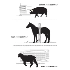 Flexible enough to wrap around posts or corners and easily mounted to any surface. Designed to cover objects sticking out of surfaces – nails, hooks and gate latches – and sized to fit over small or large areas. Panels can be arranged any way needed: 2-3 panels wrapped around a tree or wood post; single or multiple panels for walls, building corners, stalls, pens and more. Each Itchin’ Post pad measures 23-1/4″ x 14-7/8″ and weighs 3-1/2 lbs.