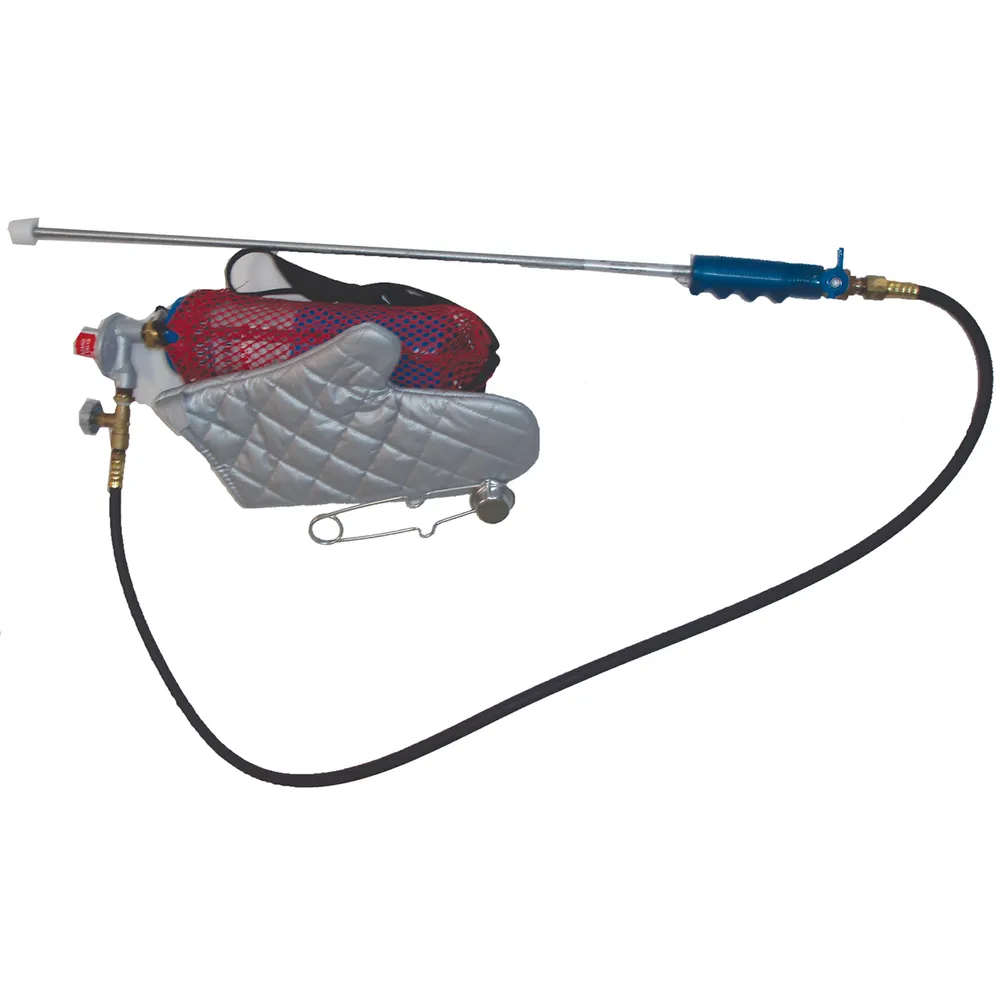 15′ Model includes 15′ hose and flameproof mitt; fits 20 lb propane tank. Also available with a wheeled cart.