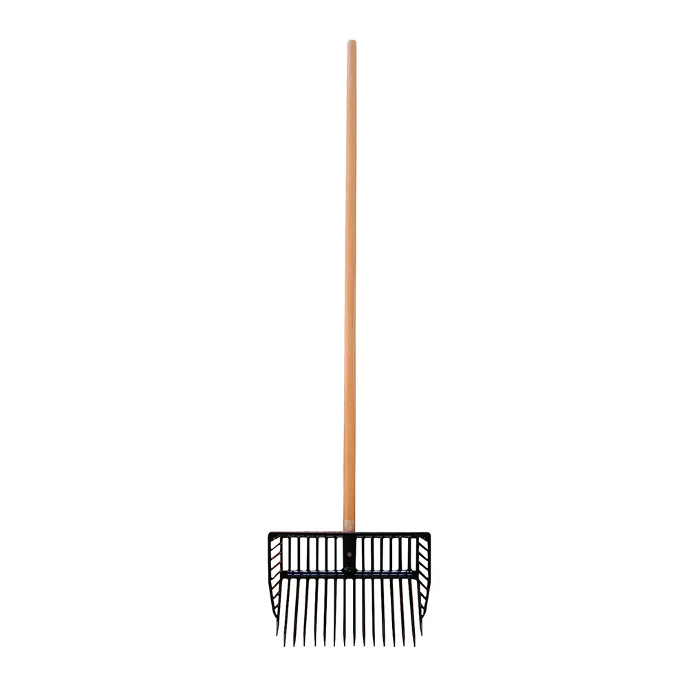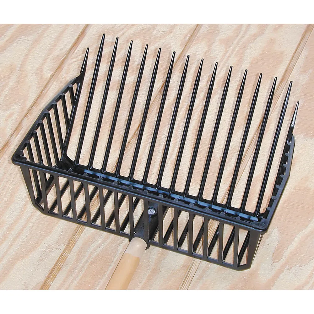 This manure fork has a built-in basket to make removal of manure faster. Wider tine spacing lets bedding flow through easier. Features rustproof, stainless steel hardware and a super tough, durable polycarbonate fork. 54″ wood handle; 16-tine fork measures 14″W; basket measures 11″L x 15-1/2″W x 6-1/4″H.